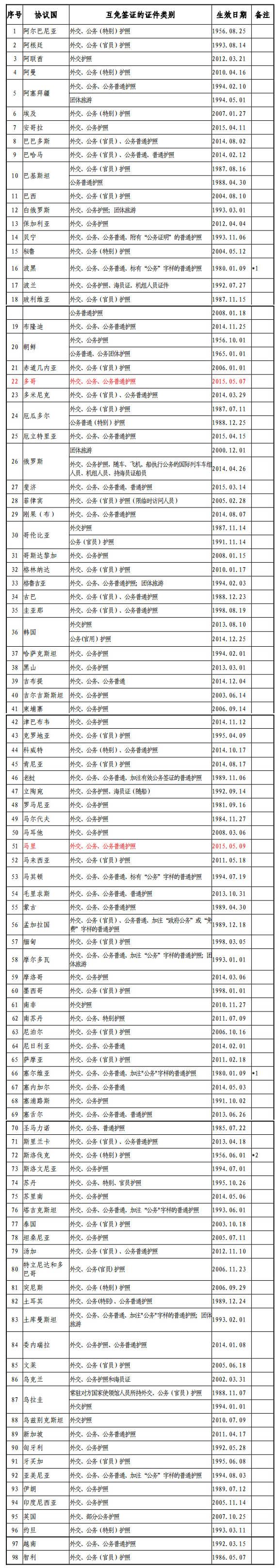 中國(guó)與外國(guó)互免簽證協(xié)定一覽表(2015年5月9日更新)